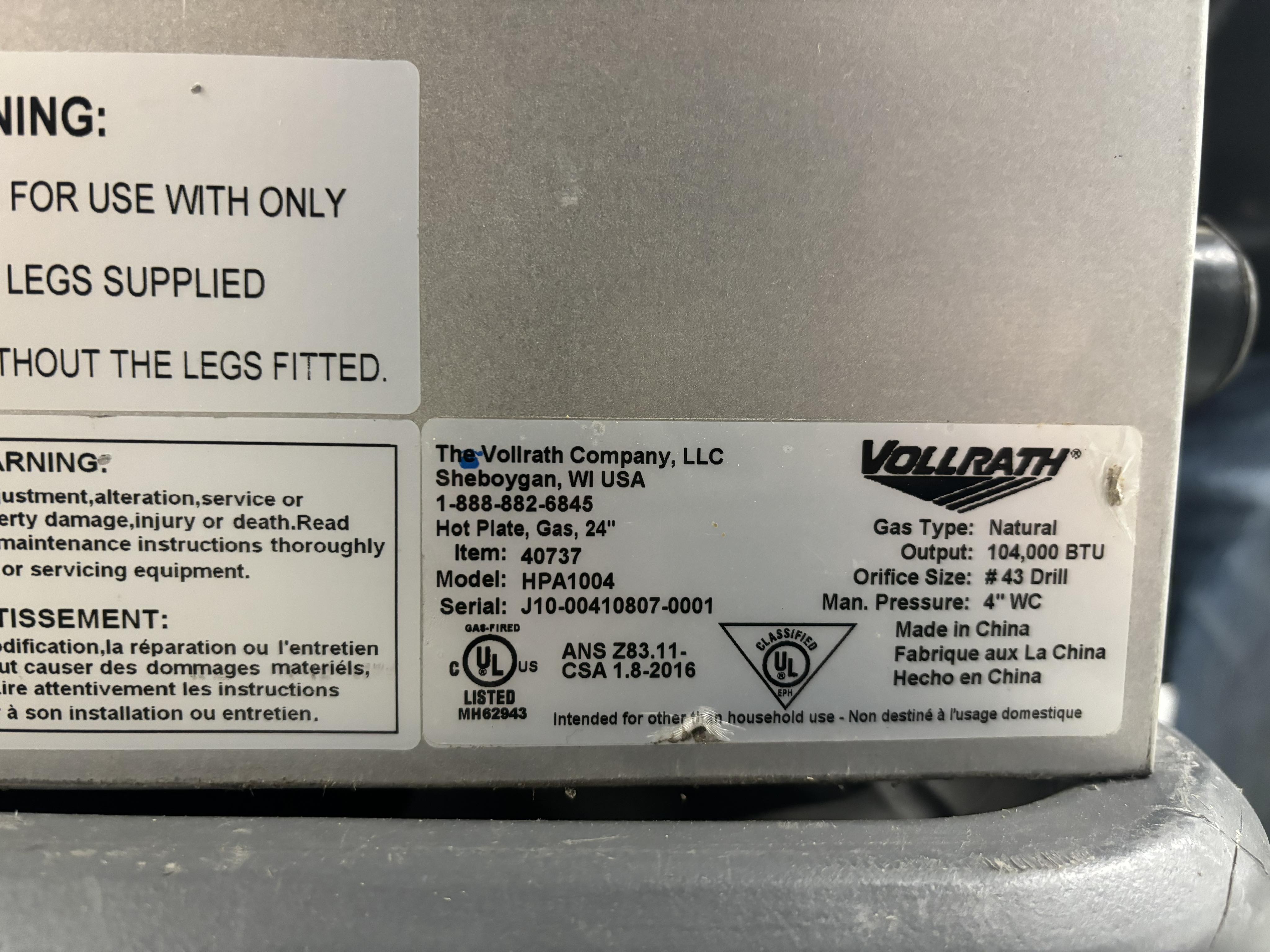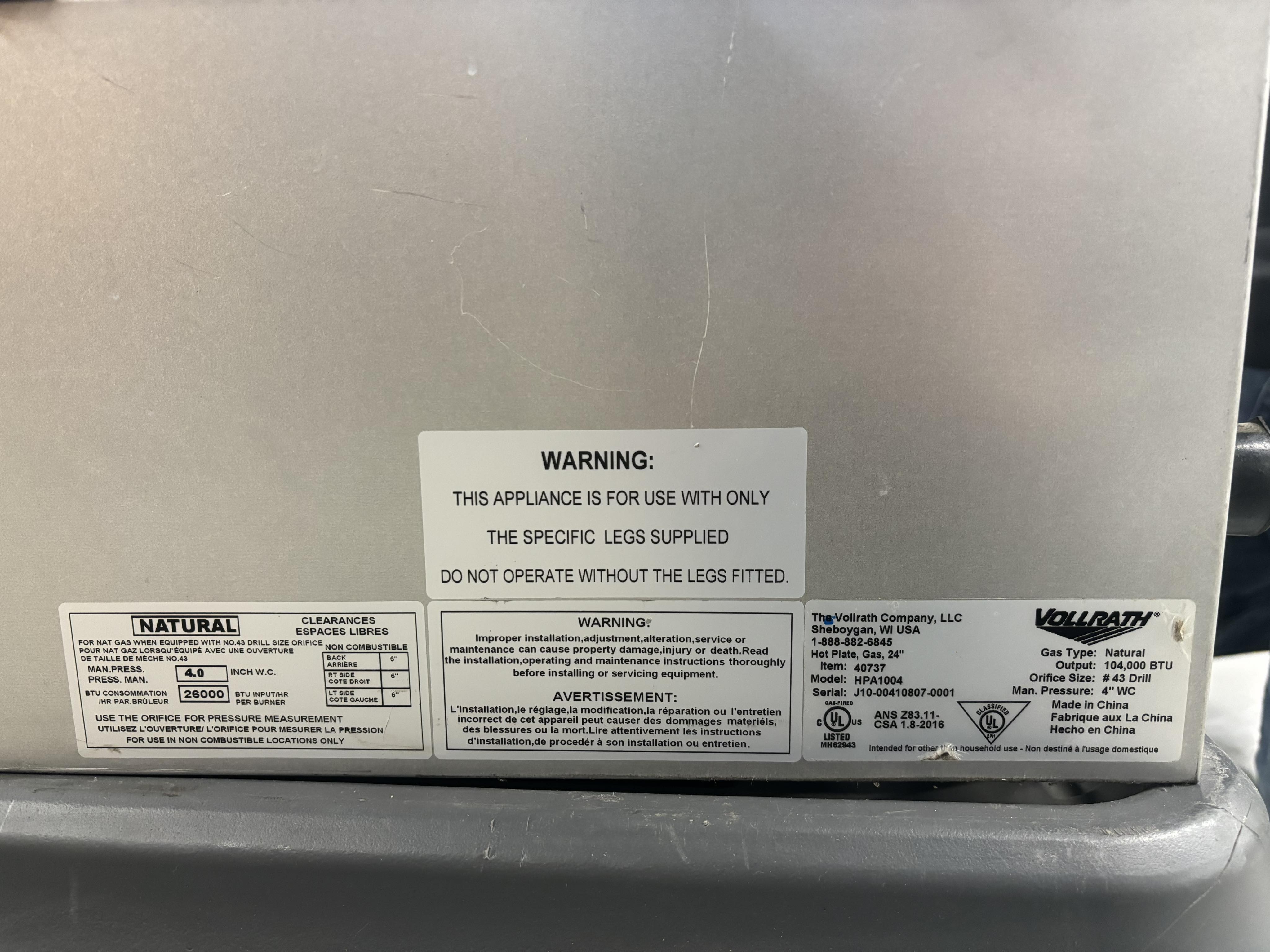 Vollrath 4 Burner Gas Showroom Special (NEW)